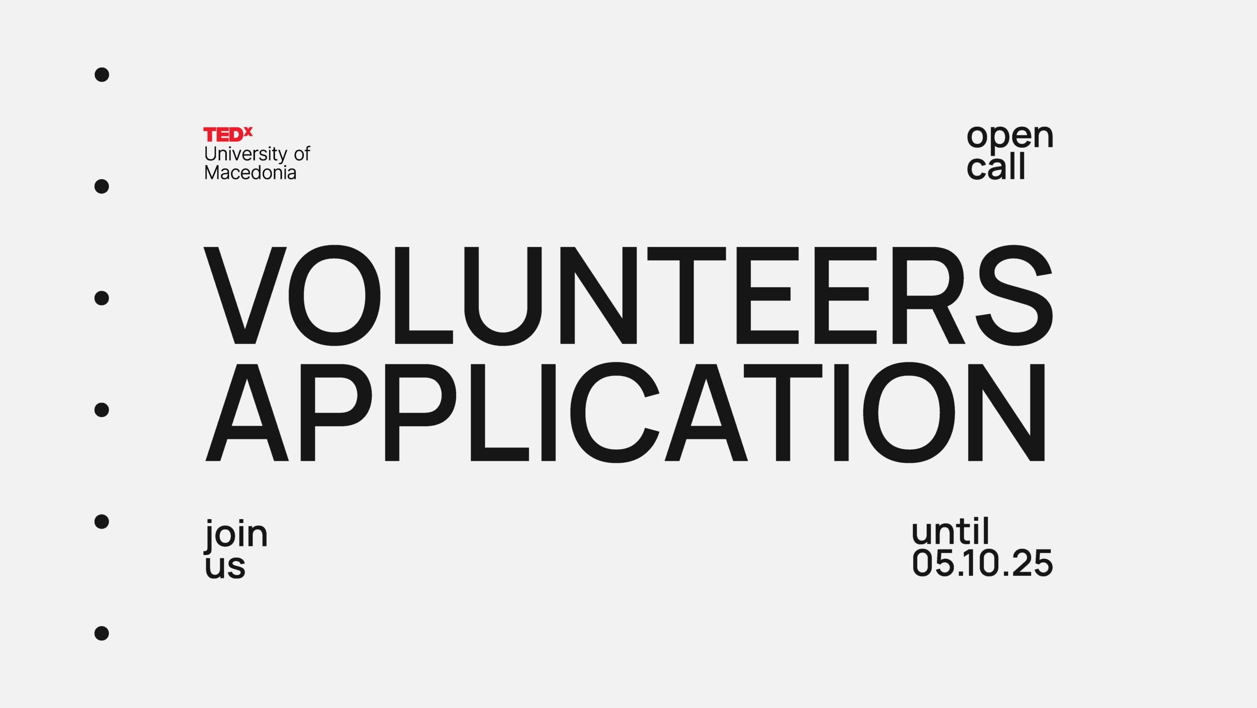 Με το TEDxUniversityofMacedonia να ετοιμάζεται να γιορτάσει τα 12 χρόνια του, η πόλη μπαίνει ξανά στον παλμό της έμπνευσης. Όλοι γίνονται κομμάτι μιας κοινότητας που μοιράζεται το ίδιο πάθος: να μαθαίνει, να δημιουργεί και να αλλάζει.