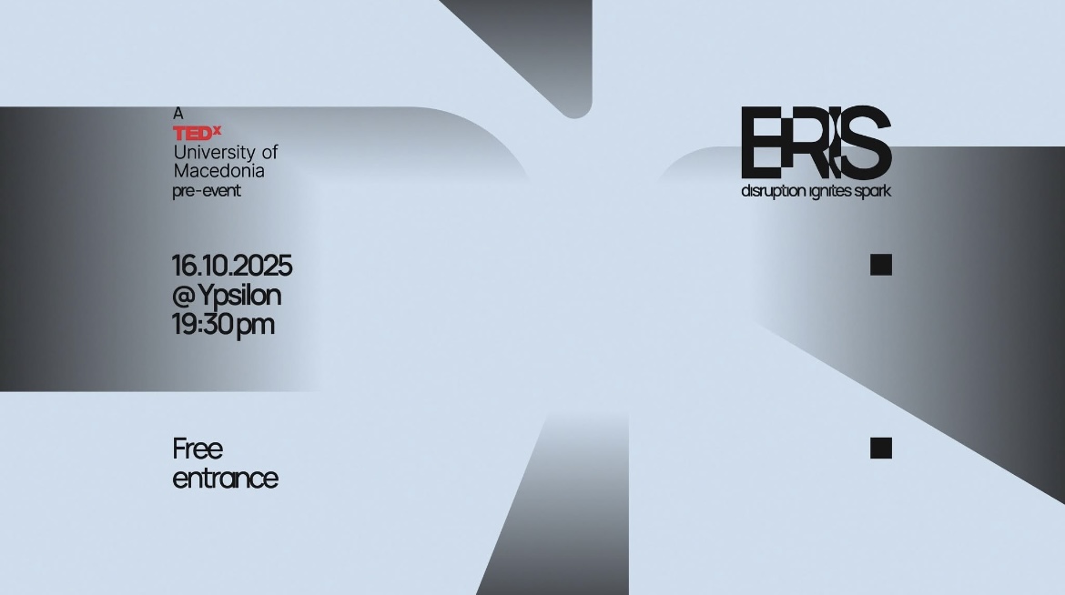 Κάθε μεγάλο ταξίδι ξεκινά με μια σπίθα. Αυτή τη σπίθα έρχεται να ανάψει το πρώτο pre-event του TEDxUniversityofMacedonia, με τίτλο “Eris: Disruption ignites sparks”, στις 16 Οκτωβρίου 2025, στο Ypsilon (Εδέσσης 5).
